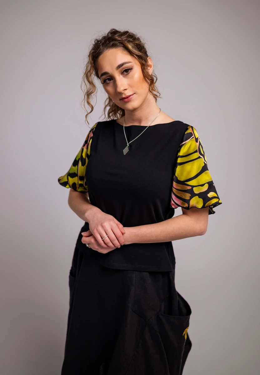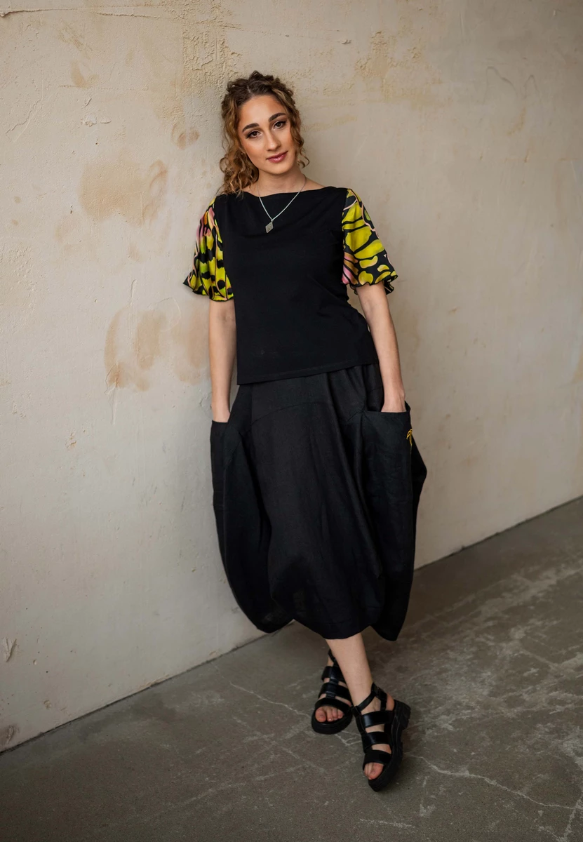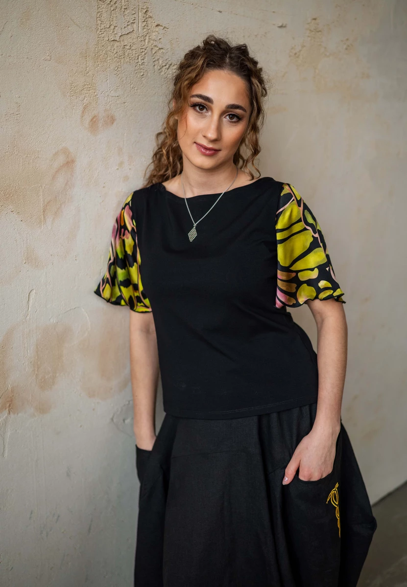 Kolory: białe z białymi rękawami, czerwone z czerwonymi rękawami w tulipany, czarne z czarnymi rękawami, czarne z rękawkami w różne wzory i kolory