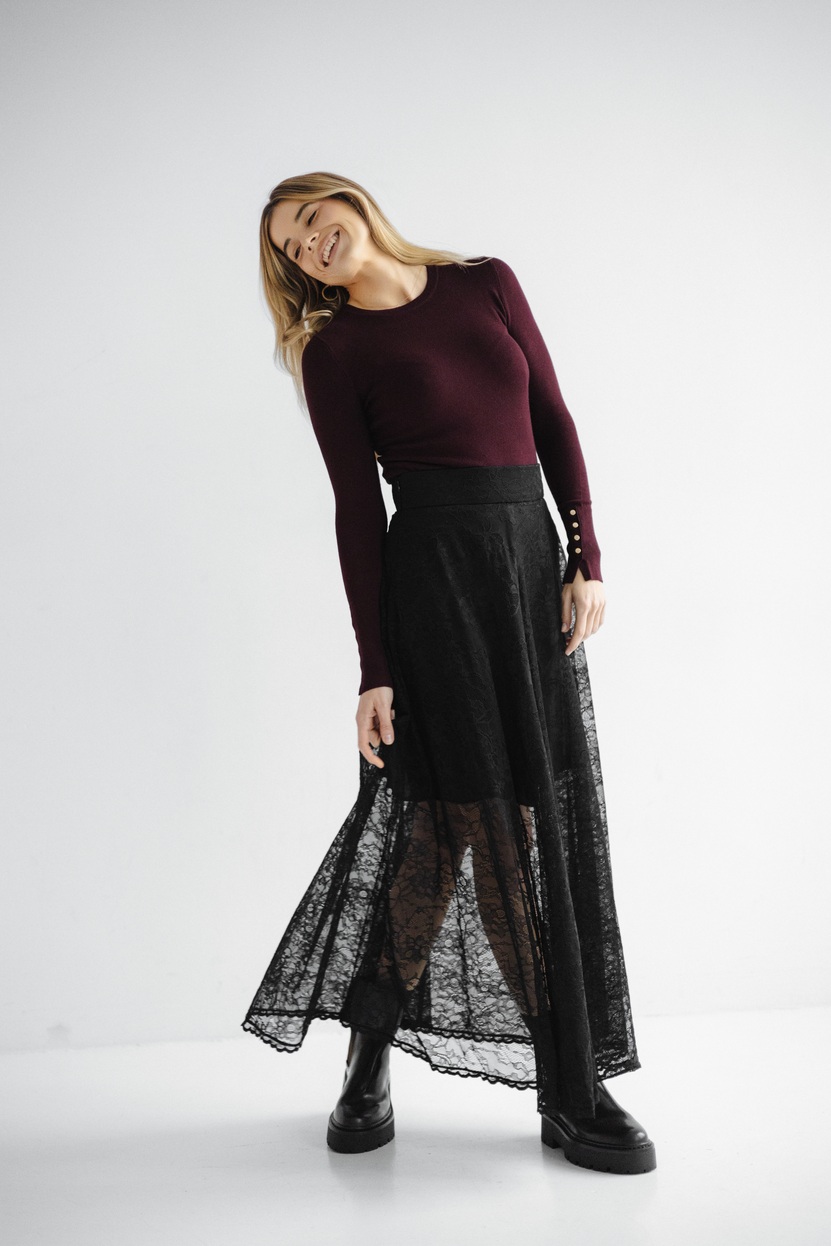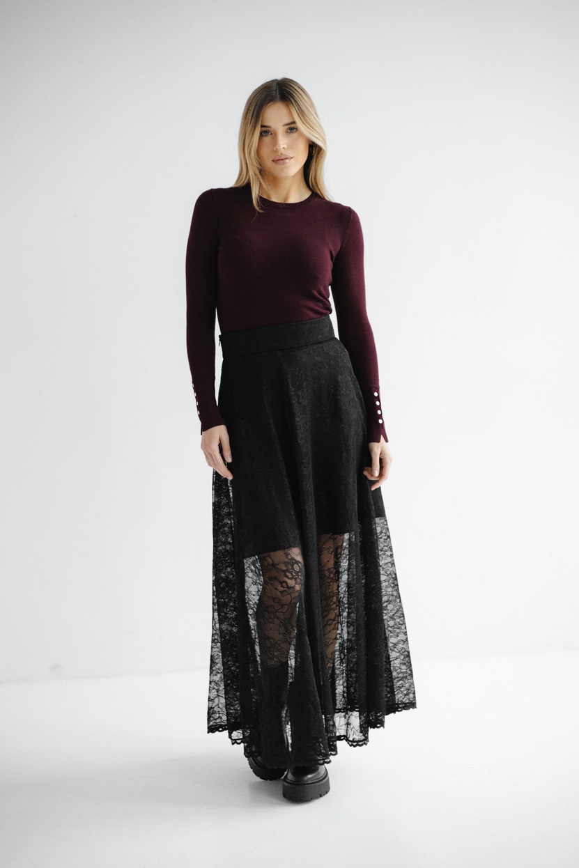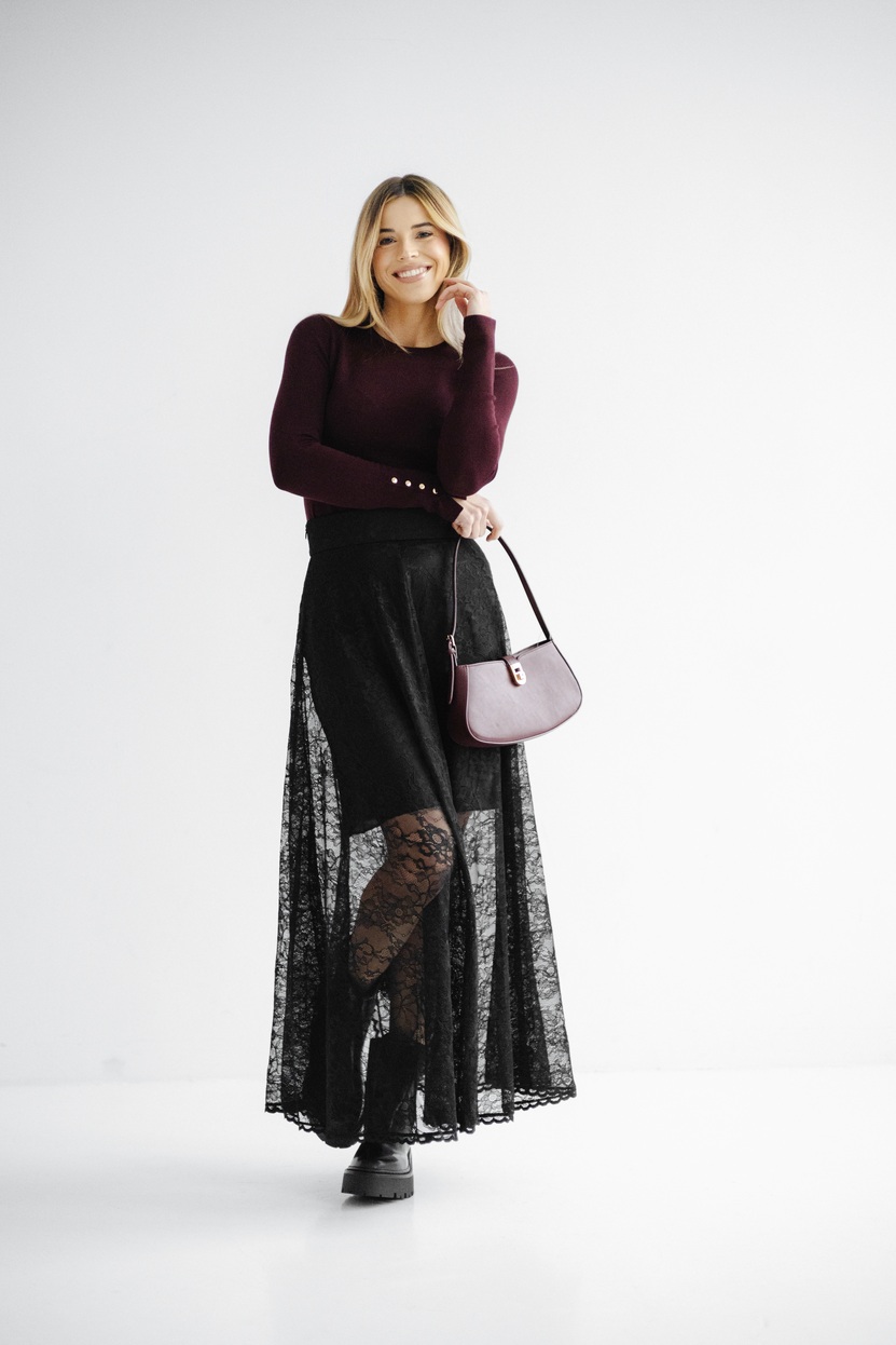 Spódnica Aria  idealna propozycja dla kobiet które cenią ponad czasowe fasony i koronki. Długa spódnica Aria zapewnia wyjątkowy design i niepowtarzalny look. To  model, który świetnie sprawdzi się w połączeniu z elegancką bluzką i marynarką , ale także w zestawie z prostym t-shirtem.