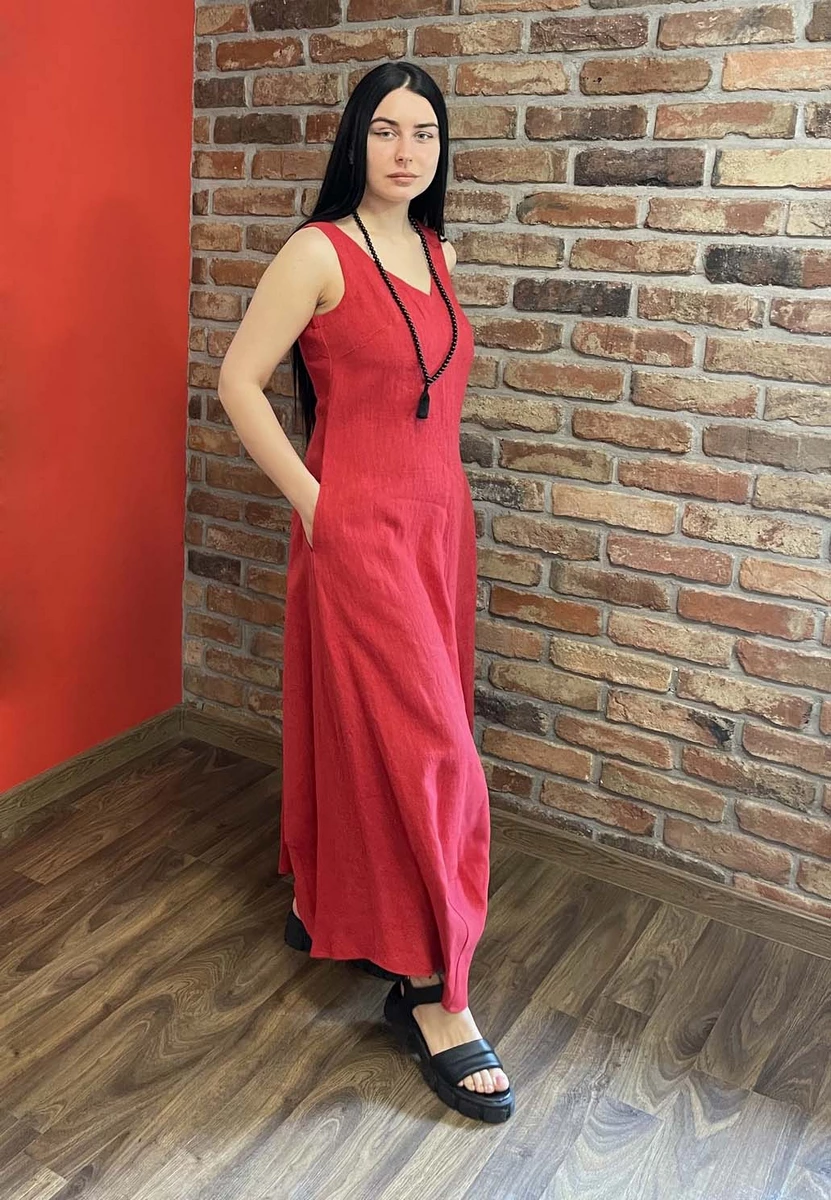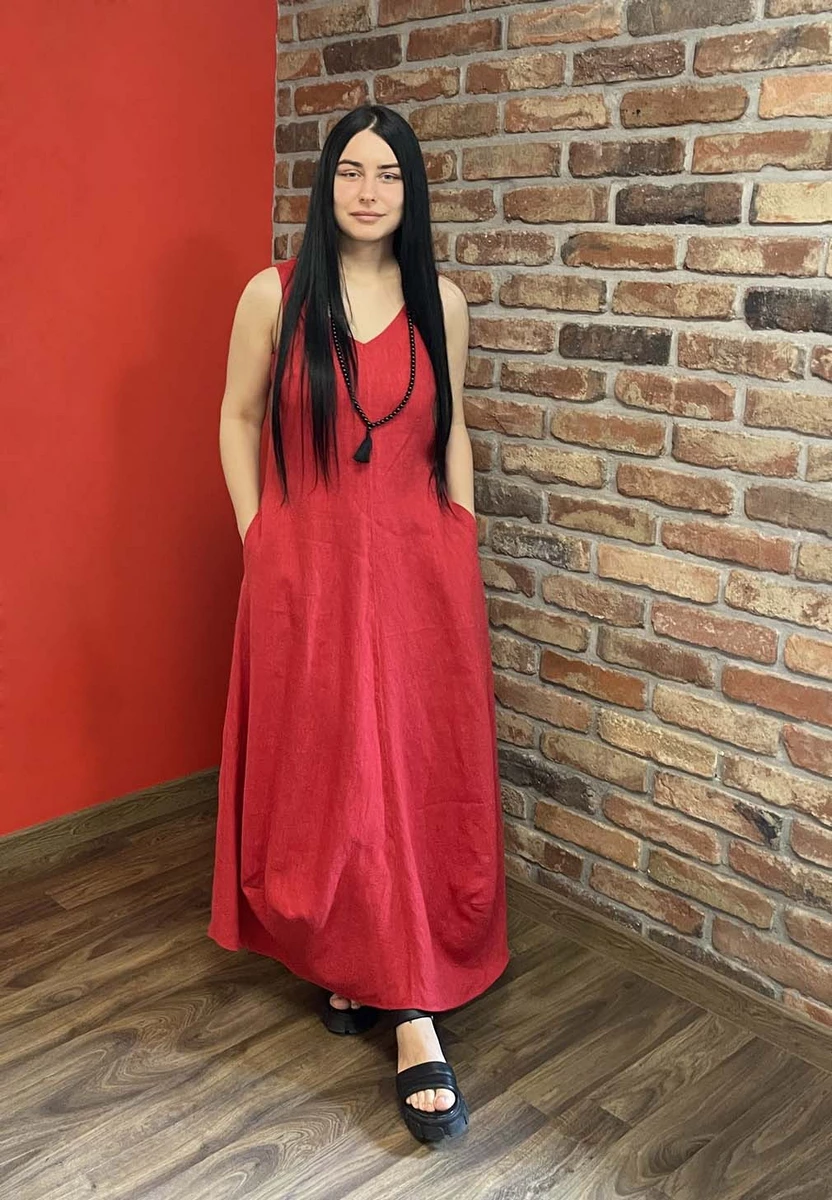 Witaj w królestwie delikatności i naturalnej piękności, gdzie każda kwitnie w pełni swego blasku. Nasza sukienka z naturalnego lnu, bez rękawów, to połączenie prostoty z elegancją.