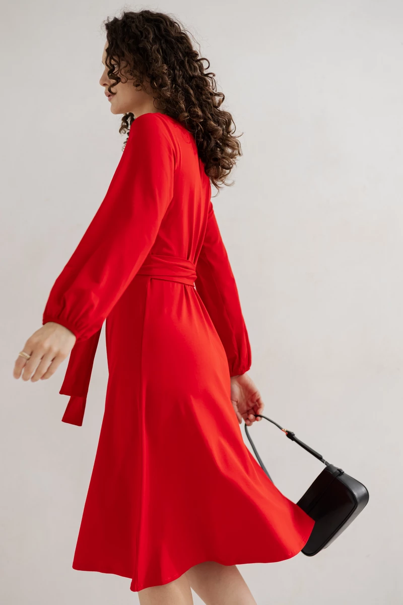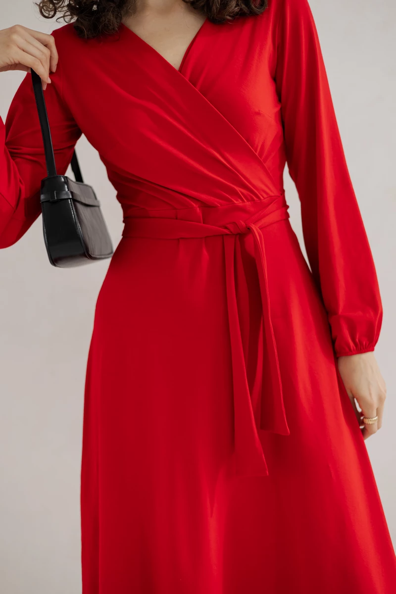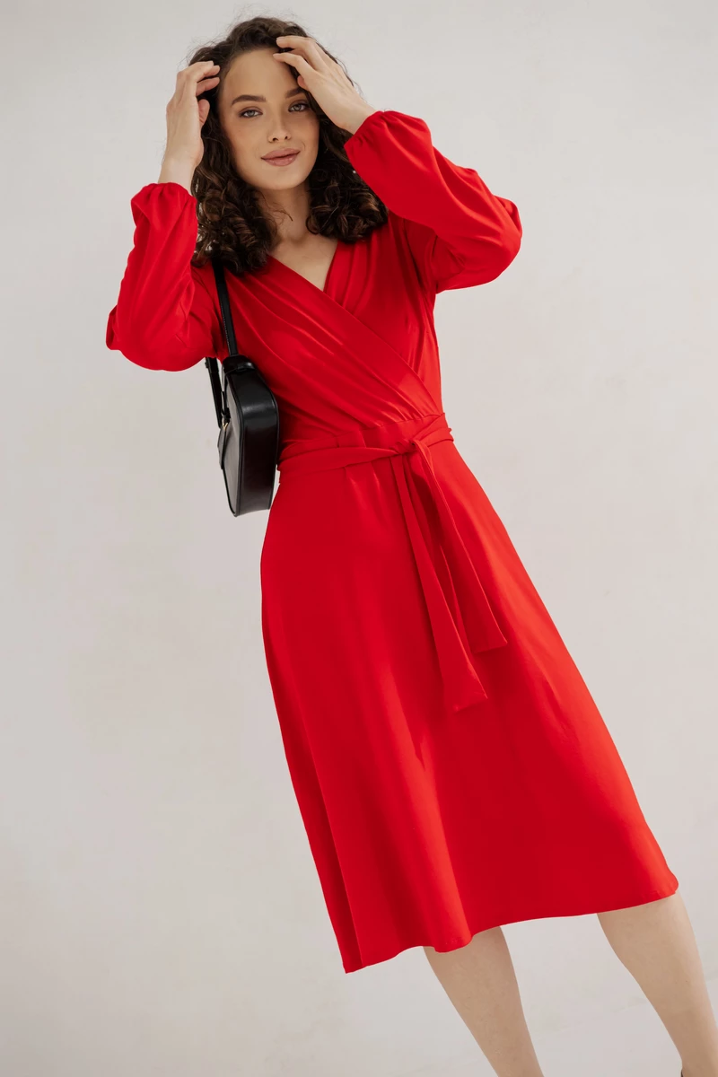 Sukienka Lili wykonana z dzianiny wiskozowej polskiej , wiązana w talii.