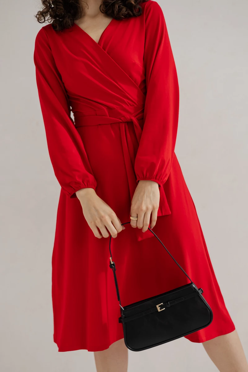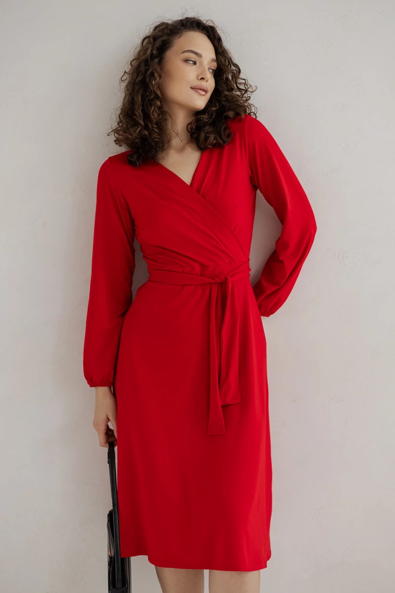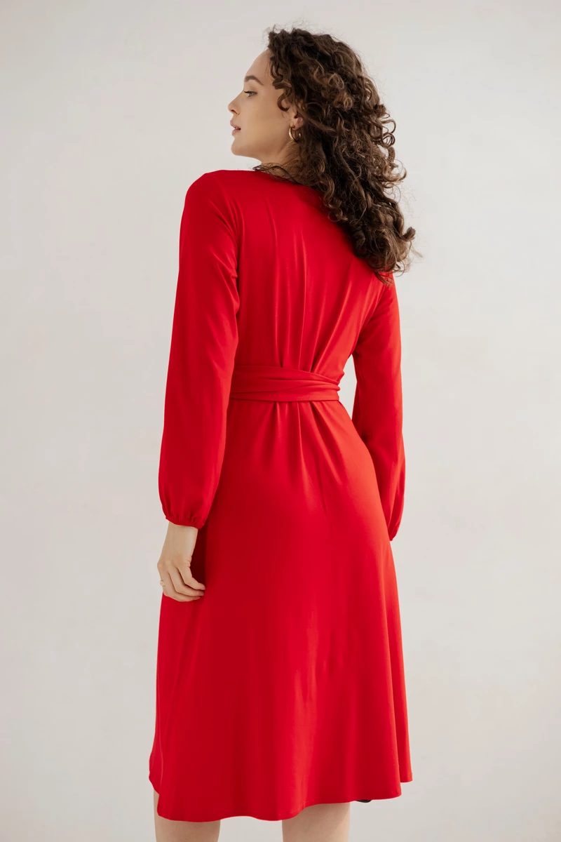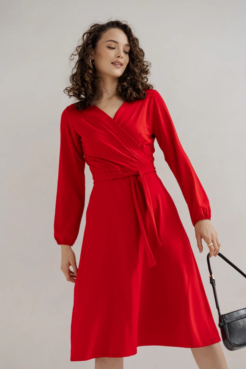 Sukienka Lili wykonana z dzianiny wiskozowej polskiej , wiązana w talii.