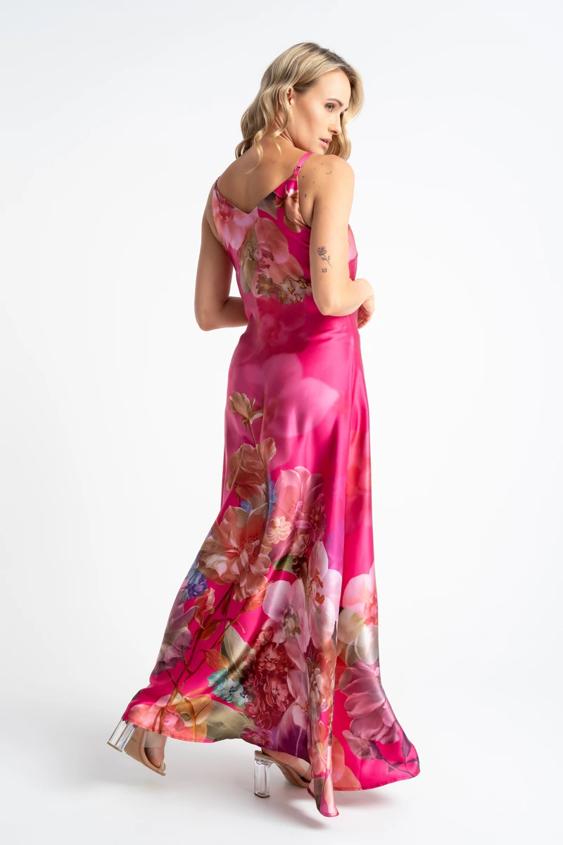 -30% OFFSukienka Rose to przepiękna sukienka o kroju maxi w wyjątkowy wzór kwiatowy, wykonana z najwyższej jakości tkaniny jedwabnej . Delikatna struktura materiału sprawia że pomimo długości sukienka prezentuje się lekko i zwiewnie. Dyskretnie otula sylwetkę i zachwyca delikatnym blaskiem, na pewno doda odrobinę magii do waszej garderoby. Fason sukienki subtelnie podkreśla talie i kobiece kształty. Z boku ma wszyty zamek aby lepiej dopasować się do sylwetki. Sukienka Rose to eteryczna propozycja na wieczorne wyjścia.