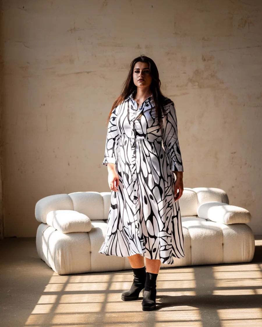-30% OFFWitaj w świecie wdzięku i naturalnego piękna, gdzie historia spotyka się z nowoczesną elegancją. Nasza sukienka koszulowa midi, nosząca imię Sofia, wyraża harmonię między stylem a komfortem.