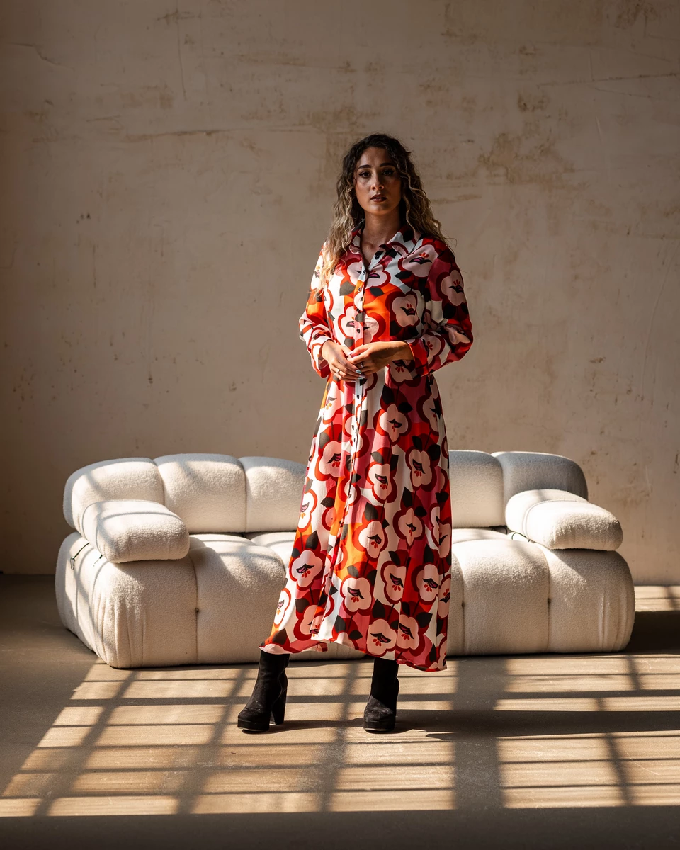 Witaj w świecie wdzięku i naturalnego piękna, gdzie historia spotyka się z nowoczesną elegancją. Nasza sukienka koszulowa midi, nosząca imię Sofia, wyraża harmonię między stylem a komfortem.