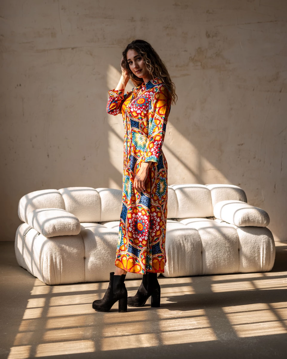 -30% OFFWitaj w świecie wdzięku i naturalnego piękna, gdzie historia spotyka się z nowoczesną elegancją. Nasza sukienka koszulowa midi, nosząca imię Sofia, wyraża harmonię między stylem a komfortem.